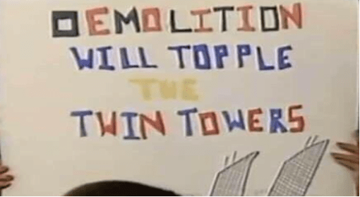 When it comes to entertainment, there’s few personalities more infamous and well known than the owner of the WWE, Vince McMahon. He’s long been suspected of involvement with secret societies including Freemasonry. The company’s use of occult symbolism and themes like the popularized NWO (New World Order) group are just a couple examples of his globalist ideology. The image below was taken from a 1989 broadcast of the World Wrestling Federation (formerly WWF, now WWE). During this era, there were 3 prominent tag teams: the Twin Towers, team Demolition and the Mega Powers. On one occasion the announcer, Gene Okurland, mentions “terrorist attacks” on the Mega Powers with the Twin Towers in the foreground. Later on, Gene interviews the Mega Powers (Hulk Hogan and Randy Savage) and says …”with one goal in mind, to defeat, or should I say, demolish the Twin Towers.” Not to be outdone, Hulk Hogan says, “It’s the love, man, that’s gonna supercharge the Mega Powers and tear down the Twin Towers.” Randy Savage gets in on the action by saying “the pain won’t stop until the Twin Towers come crumbling down!” In essence, the Mega Powers (conspirators) will use Demolition to destroy the Twin Towers. Charming.
