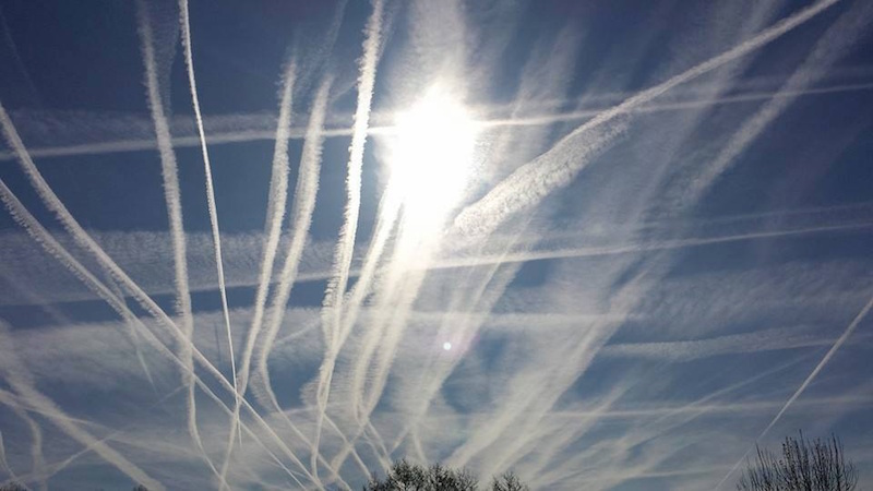 “These white aircraft spray trails are the result of scientifically verifiable spraying of aluminum particles and other toxic heavy metals, polymers and chemicals.”